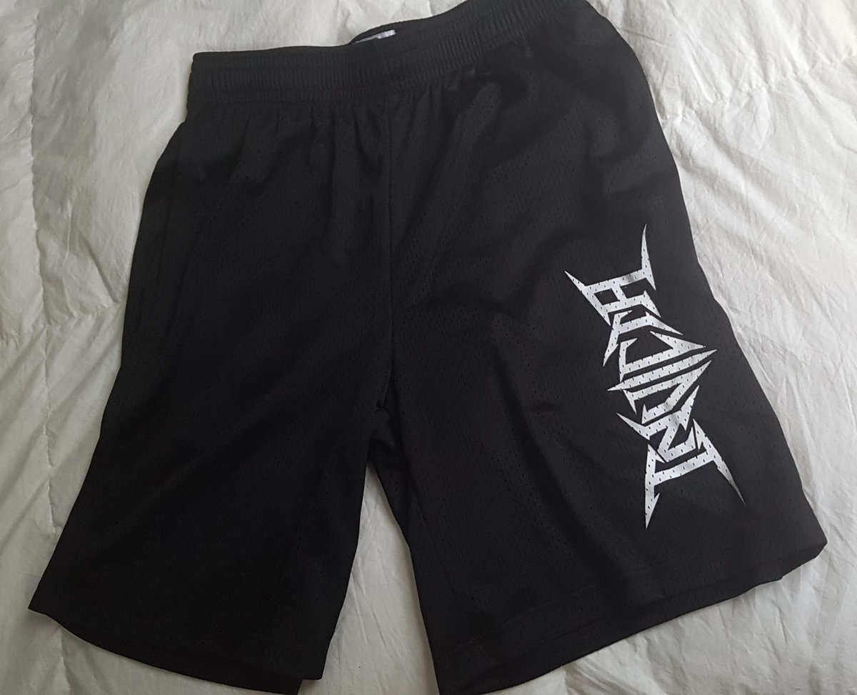 Black pocketed athletic mesh shorts with the Invicta logo on the left leg.
