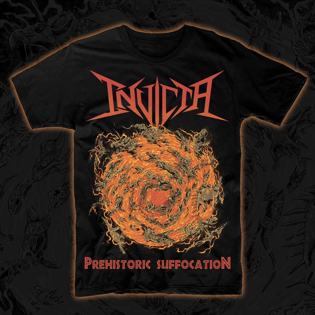 Shirt design by famed artist Mark Richards for our song Prehistoric Suffocation! This is a limited print so don't miss out!